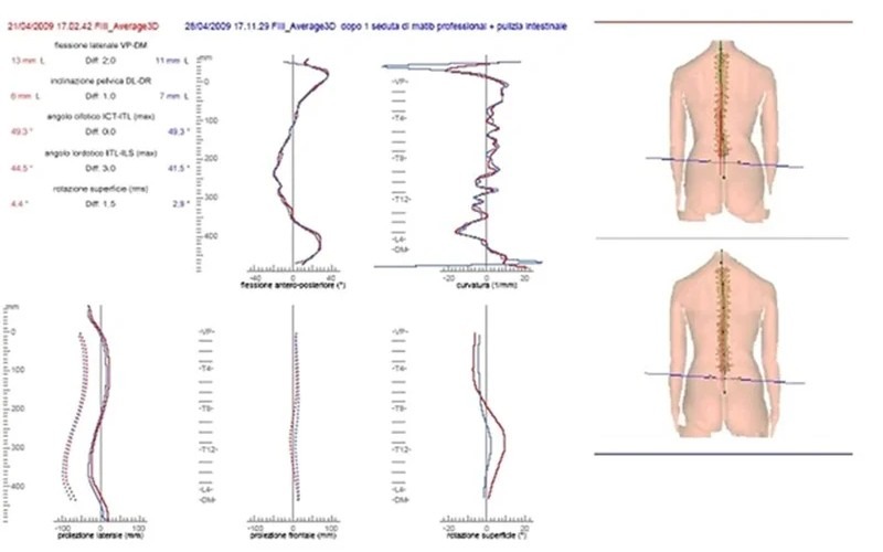Un’analisi computerizzata della colonna vertebrale che permette di individuare asimmetrie, rotazioni pelviche e squilibri posturali con precisione millimetrica.